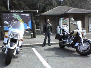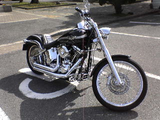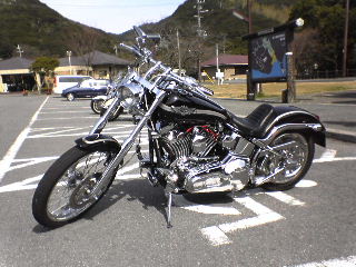 特有の3拍子でメッチャ美しいハーレーが、私たちの横に。 とっても気さくな方で、いろいろバイク談義をいたしました。お名前聞いてなかったので、デュースさん(仮名)快く写真撮らせていただきまして、ありがとうございました。 ちなみにこのハーレー、な・な・なんと500万以上かかってるそうです。それでもまだまだとおっしゃってました。しかもこのハーレーは、セカンドバイク・・・恐ろしや〜〜・ハ〜レ〜ダビットソン。 |