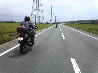 走ってるときは良いのだが止まると暑い〜 ロイヤルスターのときは感じないケツ痛に・・・ でもロイヤルでは感じない風を感じることができた。 休憩の度にガブガブ飲むのでお腹調子悪い。 |