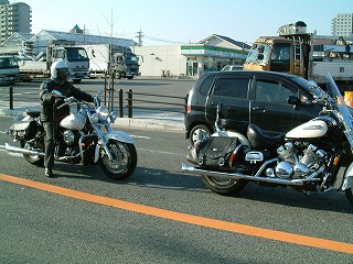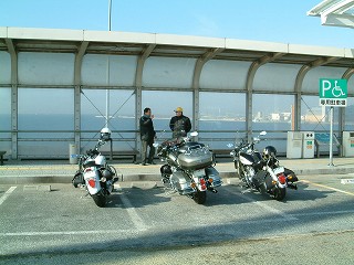 阪 神高速湾岸線をひた走り第2集合場所で堺のナンさんと合流する。お天気は良いのだがまだ時間が早いので結構寒い。先月のツーリング時に寒さでマイッタ経験 から使い捨てカイロなんぞを用意してたのだが、持ってくるのをすっかり忘れてしまい結局教訓は生かされなかった。まあ前回に比べると今日は天国のような陽気なのでカイロが無くてもヘッチャラだ。 |