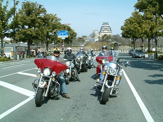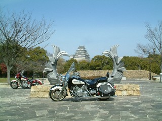 運よく信号で止まったので姫路城をバックにパチリ。それにしてもキクさんの「ヤッコカウル」バッチリ決まっててカッコいい。まるで純正のように違和感がまったくない。 最初に”運よく”と書いたがこんな事も地元の方々がいればこそ気付くのであって、sbooだけならキットそのまま通過するだけだっただろうと思う。 |