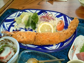 メインイベント これが噂の?「ジャンボ海老ふりゃ〜」だ!! 凄い・・・全てがビッグだ。ご飯大盛は「うどん鉢」だぞこれは。最高に美味しかった〜♪♪ |