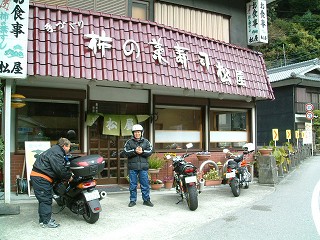 予定変更 大台ケ原のお天気が雨のようなので急遽行き先を変更することになった。そこで猪鍋をチェックするdaihachiさん。店舗お休みで残念!! |