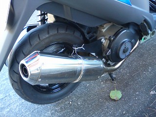 アクシデント 兄さんのアドレスに異変が・・・!? マフラーのステーが外れてしまった。とりあえず針金で応急処置。さすがの応急処置キットだ。 |