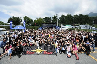 記念撮影 StarDaysの宣伝に横断幕を持ってダッシュ! お陰様で最前列をゲット。(GL1800さんダッシュありがとうございました。) |