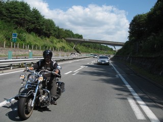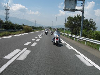 中央道 今回はいつもと違うカメラなので走行写真がなかなかうまく撮れない。今回も先頭を走らせていただいてるのでバックの絵が多い。 |