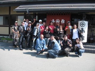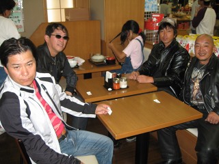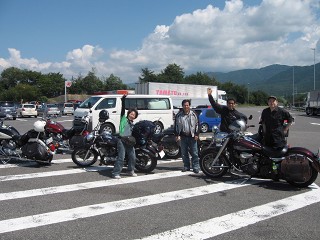 養老SA(休憩) 約1時間走り養老で休憩していると、声を掛けてきてくれる人々が・・・この若人達もDS-MTGに行くとのことで記念撮影。 |