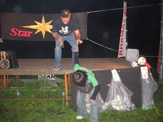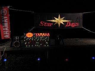 キャンプ場 舞台設営もバッチリ終わり、TOMさん作の「StarDays電飾」が・・・制御装置付の本格的な電飾でビックリした。 |