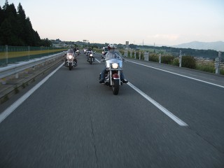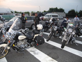 出発 AM7:30 いよいよStarDaysの日がやって来た。 AM10:00に名神・大津SA集合。この後、ブーツを履いてないことに気付きUターン。 |