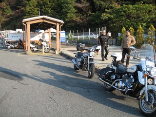 阪和道・泉南IC横ファミマ AM7:00 今日は集合場所が遠いので、いつもより早い午前7:00に竹さんと合流。ココでJC後輩のT君と出会う。貝塚JC40周年記念コンペだそうだ。 | 西名阪道・香芝SA AM7:50 前回ご一緒していただいたYASUさんが待っていて下さいました。参加者が少なかったので嬉しかった〜 |