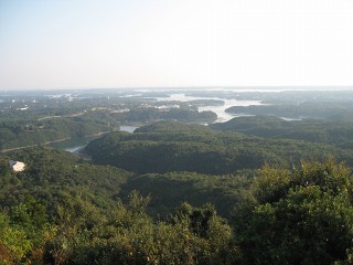 灯台上 大王埼灯台は大きくて登るのが大変だった。上まで登ると絶景で海風が爽やか・・・登って良かった。 | 横山園地 波静かな英虞湾に浮かぶ、真珠いかだやリアス式海岸が一望できる公園地。結構険しい道を登ってきたが・・・ |