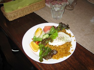 昼ご飯 昼食にドライカレーをいただいた。これは〜なななんとバード君が作ったのだ!!すっかりマスターになってたのでビックリしたよ。 |