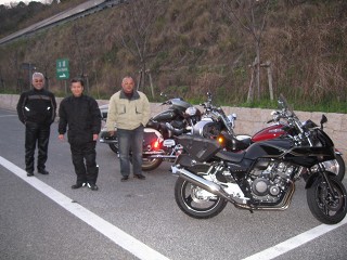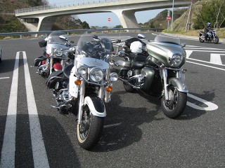 紀ノ川SA(AM8:50) 今日は宮さん、サカさん、YASUさんとの4台で初春ツーリング。ここ紀ノ川SAはバイクでいっぱい。おまけに旧車会までやって来た(爆音) |