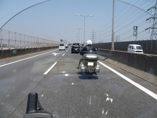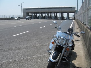 2.阪神高速湾岸線・高石料金所 PM12:00 料金所出口でサカさんと待ち合わせ。GWの初日なので渋滞を心配したが、ここまでは順調。 意外とクルマ少ないような気がする。 |