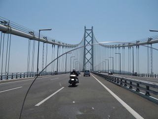 4.明石大橋 京橋から垂水JCTまでドップリと渋滞にやられたが明石大橋に出るとご覧の通りスムーズな流れになった。今日は風もなく走りやすい。 |