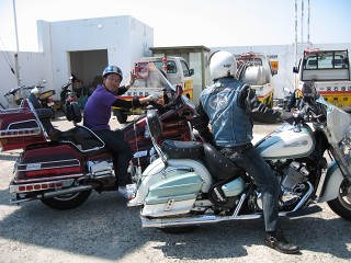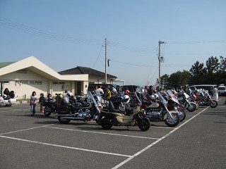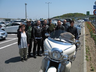 5.淡路SA PM1:05 淡路SAでは、アレアレ〜沢山のROCメンバーが笑顔で出迎えてくれた。タマさん、スミダさん出発寸前のところゴメンなさい。 |