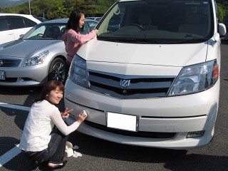 10.緑PA 無事にGGさん娘さんと合流。虫が付いた愛車を拭き拭き・・・「偉い!」 皆さん(奥様)見習いましょうね。クルマを可愛がると良い事あるよ〜 |