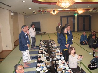 16.宴会2 お酒に酔う前に全員の集合写真をパチリ。 今回のMTGでは沢山のROCメンバーが集まり「久しぶり〜」の声が飛び交う。 |