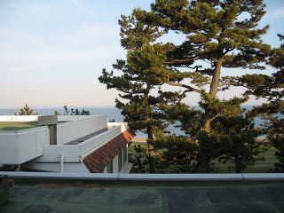 35.慶野松原荘 AM6:00 宿の窓から見た景色。昨日は日が沈むまで夕焼けを楽しめた。 松原の名前がうなずける景色。 |