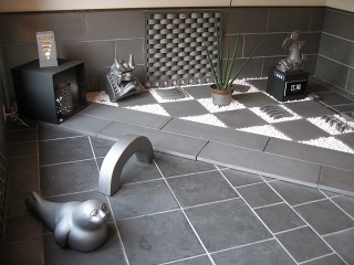 44.イブシギャラリー3 瓦の技術で製作された色々な置物。 色んなものが瓦と同じ雰囲気で作られることに感心した。 |