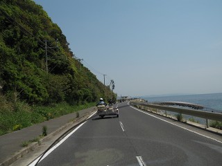 53.県道76号 南淡路水仙ラインといわれるコースでズ〜っと海沿いを走る快走路。すれ違うのはバイクよりも自転車の方が圧倒的に多い。 |