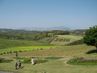 67.あわじ花さじき5 歩くのがしんどいので向こうまでは行かなかったが、園内は広い。ここの名物は「ビワアイス」と聞いたのだが、お腹がいっぱいで・・・残念。 |