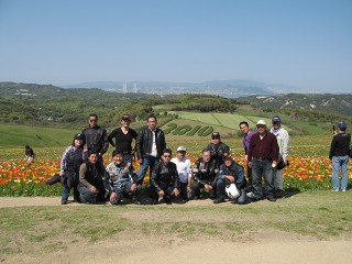 65.あわじ花さじき3 キレイな景色をバックに集合写真。 おっちゃん達でも綺麗な花をバックにすると・・・ なんとも言えませんな〜〜!? |