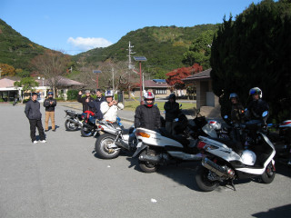 5.加太国民休暇村 モリヒさんのエンジン(焼)トラブル発生。新エンジンで慣らし中と聞いていたのだが、大川トンネルでついつい全開に・・・!! ゴメンなさい。 |