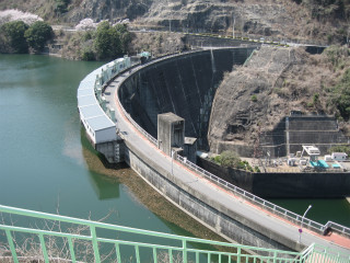 9.高山ダム3 ダムの上の道を通ってやって来た。凄く立派なダムで、ダム湖の周りは桜が多い。ロケーションよく分からないが、ここは京都府らしい。 |