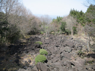 13.鍋倉渓 幅10m、長さ650mに渡り、大小の岩石が寄り集まり重なる石の列で、なんだか不思議な光景。これが自然にできたとは驚きやね。 |
