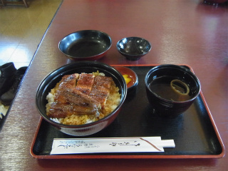 20.うなふじ 3 大盛り禁止令のsbooは「うなぎ丼(並)」と「きも焼」をと思ったのだが、非情にも「キモ焼終了」の看板が・・・結局うなぎ丼(上)をいただいた。 |