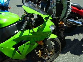 2.泉南IC横ファミマ 2 先ずは〜のりのりさんのNEWマシンGPZ900R。 sbooの勝手な予想で「赤」をイメージしてたのだが漆黒のマシン。アオられそうな予感・・(笑) |
