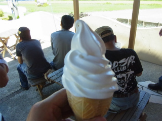 10.香芝SA 3 香芝SA到着後まもなくソフト男爵炸裂@@ 自己紹介よりも先に?トレードマークの巻巻ソフトクリームを笑顔でいただく竹さん・・・早っ!! |