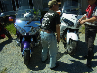 29.ミルクパレット 駐車場 ゴールドウィング2台は大迫力。バックギアでキュイ〜ンと動けるのが凄い。比べてみると結構色んな所が変更されているのが分かる。 |
