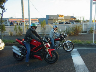 3.泉南IC横ファミマ 3 そして先日納車されたばかりの〜あきらくんのNEWマシンSTREETFIGHTER 848。イタリアンレッドの速系で〜これまたアオられそうな予感。 |