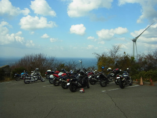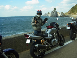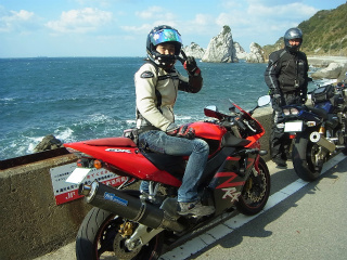 14.県道24 白崎海岸の絶景ポイントでパチリ。 本日初参加の、きのぽんさん(XJR1300) 遠方よりの参加ありがとうございます。 |