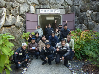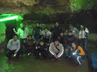 21.戸津井鍾乳洞 3 鍾乳洞の最初の踊場で集合写真。全員揃ってません・・・ゴメンなさい。頭をぶつけて苦しんでいたので全員に声を掛けられなかった。 |