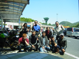 4.中国道 西宮名塩SA AM10:00 ココで全員集合。本日は9名でのツーリングとなる。参加者特典?としてチームフラッグのデザインを公開したのだが・・・どうでしょ〜?? |