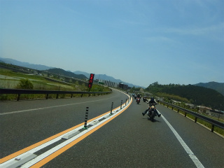 8.北近畿豊岡道 クルマに前を走られるとペースが遅くなるのだが、お天気が良くて気持ち良いので許せてしまう。これは表紙ショット・・・ポーズに感謝(^_^)v |