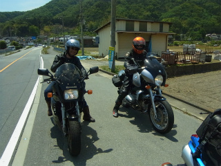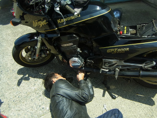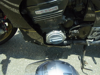 14.トラブル発生・・・さぁどうなる!? K2に右折したところで、のりさんとbachaさんがやって来ない。ついにトラブル発生!!水漏れでアンダーカウル外して修理する。 |