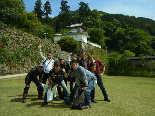 20.出石城跡 2 三脚セルフタイマーショットに皆さん慣れてきてポーズが決まるようになってきた。なかなかの良いショットやね。これからもEXILE風で(笑) |
