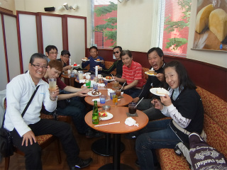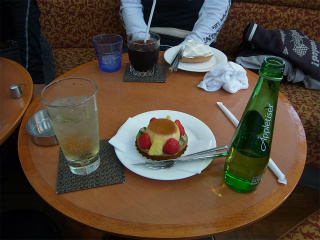 22.KATASHIMAさん 2 健康診断も終わり(要再検査だったが)気兼ねなくスイーツをいただく。ほぼ皆さんケーキセットでsbooはアップルソーダとプリンケーキ。 |