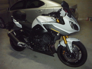6.舞鶴若狭道 西紀SA AM10:40 お待たせしてゴメンなさい。FAZER8は予想通り乗りやすくて楽ちん。ノーマルマフラーでしばらく乗ると心に決めたのだが・・・静か過ぎる!! |