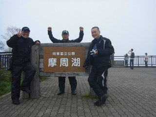 13.R241 うぉ〜〜ポーズに感謝!! ちゃんとミラーを見てくれてることに一寸ビックリ。さすがバイクに乗って四半世紀以上?のベテラン達。 | 14.摩周湖 PM4:00 道東道を足寄IC(最終)まで道を進め、R241で摩周湖までやって来た。何度か来ているが、霧の摩周湖を見るのは初めてで感動した。 |
