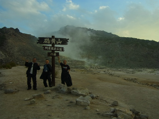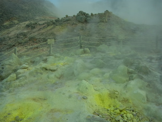 21.アトサヌプリ2 ココ近づいてくると硫黄のニオイが凄い。もう山の麓から硫黄を感じることができると思う。青空に霧に硫黄に蒸気とフルコースを満喫。 | 22.アトサヌプリ3 硫黄の成分が黄色いのがよく分かる。因みにアトサヌプリとはアイヌ語で「裸(アトサ)山(ヌプリ)」を意味するらしい。山の鼓動を感じるね。 |