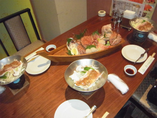 71.海陽亭 二日目のお宿は「海陽亭」。ホテルと言うより料亭みたいな名前やね。長野ナンバーのライダー達も泊まっていたようだ。 | 72.魚河岸 浜作 夕食 PM5:30 カニ屋のおばさんに教えてもらった「ひょうたん」は本日休業で、お隣にあった「浜作」で夕食をいただいた。ラストのテーブル席を確保できた。 |