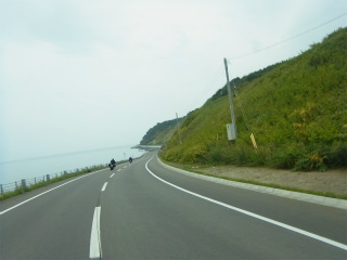 31.R391 いつもの事だが北の大地は信号が少なく、クルマが少なく、景色が良い、とどれをとっても関西ではなかなか無いシチュエーションだ。 | 32.R334 ついにオホーツク海に出た。あとはこのままオホーツク沿いに進むのみ。地図で見ると近いのだが実際に走るとかなり距離がある(^_^;) |