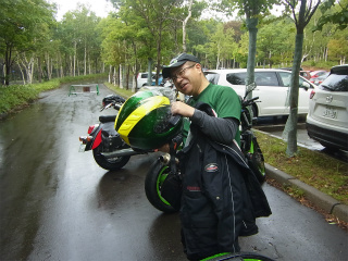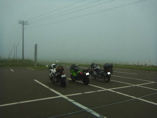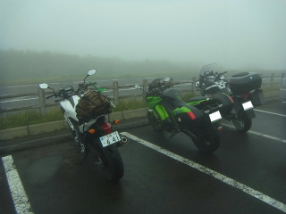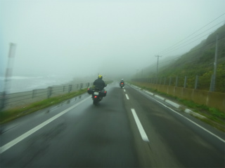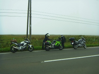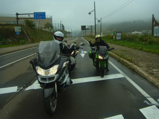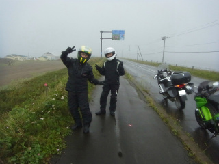*バイクで北海道は天気が悪くても最高!! *レイングッズのハードテストができた。 *さすがTちゃん、ヒヤヒヤが全くなし!!