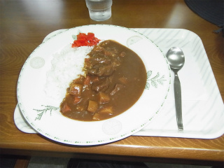 51.知床自然センター2 ヘルメット内装を絞ると・・・ポタポタと滴り落ちる雨水。ココで食事を摂ることにし、しばらくヘルメット内装乾燥タイムとなる。 | 52.知床自然センター3 昼食 3人とも昼食に鹿肉カレーをいただいた。鹿肉と言ってもあまりビーフと変わらない。チョッとだけバサバサ感があるかな〜でも美味しかった。 |