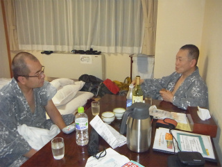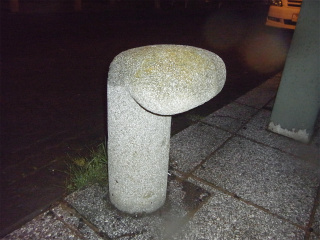 75.根室市 道路ビット 本来は港にあって船をロープで止めるのがビットだが、これは道路にあるビット。港町のイメージで歩道ポールをビット風にしてるのかな。 | 76.海陽亭 部屋 PM?? 海陽亭は部屋が広くてユックリできる。手前のスペースにヘルメットやウエアを置いているので部屋には湿度がこもらない・・でもエアコンなし。 |