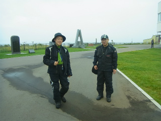 87.納沙布岬8 北方領土を望む海辺に色々な記念碑が建てられている。一番向こう側にあるのが「きぼうの鐘」で、鳴らすと予想より大きな音が響く。 | 88.納沙布岬9 sbooも含めてフル装備(雨仕様)での移動となるため、いくら涼しい地だといっても結構暑い。何時雨が降るか分からないので仕方ないね。 |